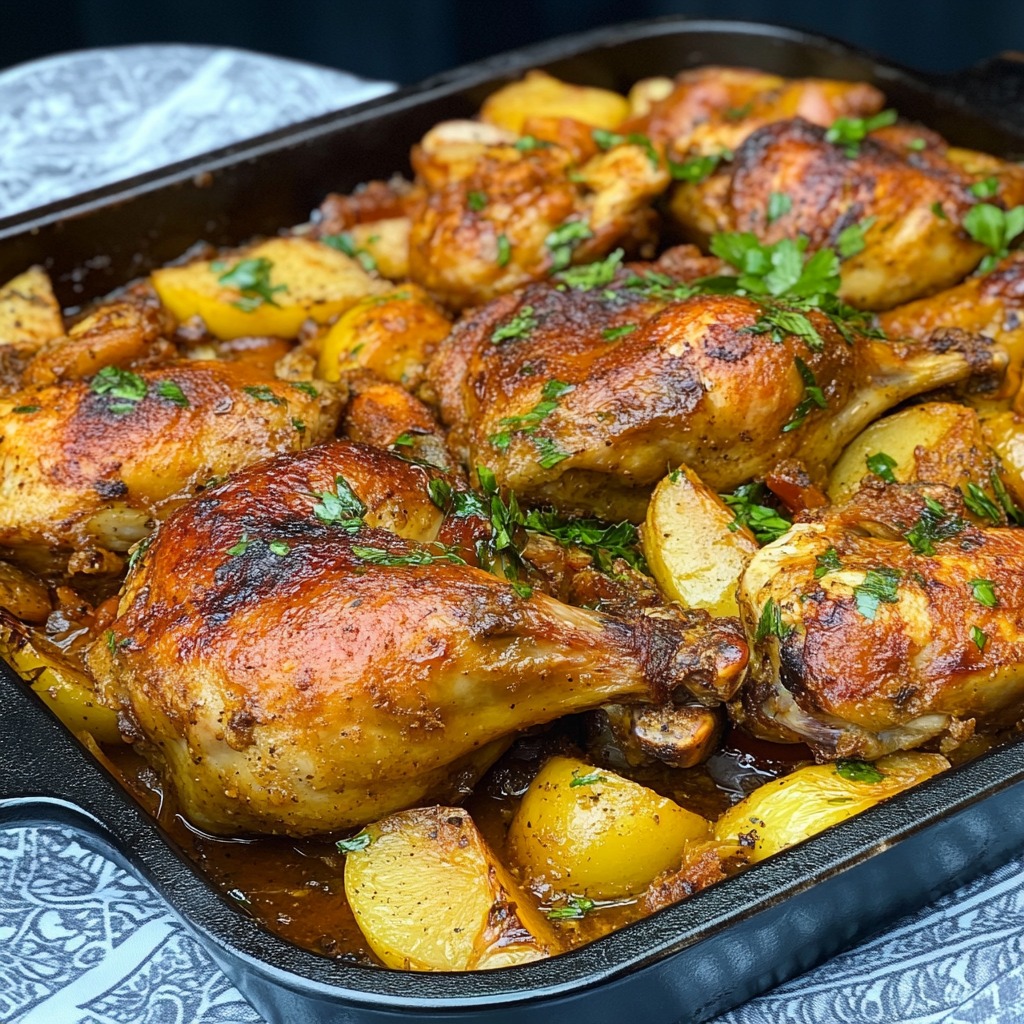 La cuisine au four est sans conteste l’une des plus réconfortantes et pratiques qui soit. Elle transforme les ingrédients les plus simples en véritables plats de fête, surtout quand elle s’appuie sur des marinades savoureuses et des associations d’épices bien pensées. La recette que nous vous proposons ici est un plat complet, coloré, parfumé, qui séduit autant par ses saveurs que par sa facilité d’exécution : des coquelets rôtis tendres, accompagnés de pommes de terre fondantes et dorées, le tout enveloppé dans une marinade au yaourt, citron, ail, herbes et épices fumées.
