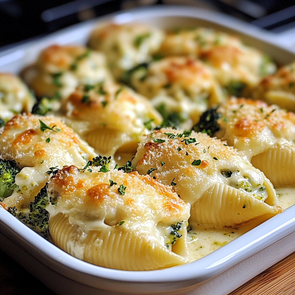 Coquilles Farcies au Poulet, Brocoli et Alfredo