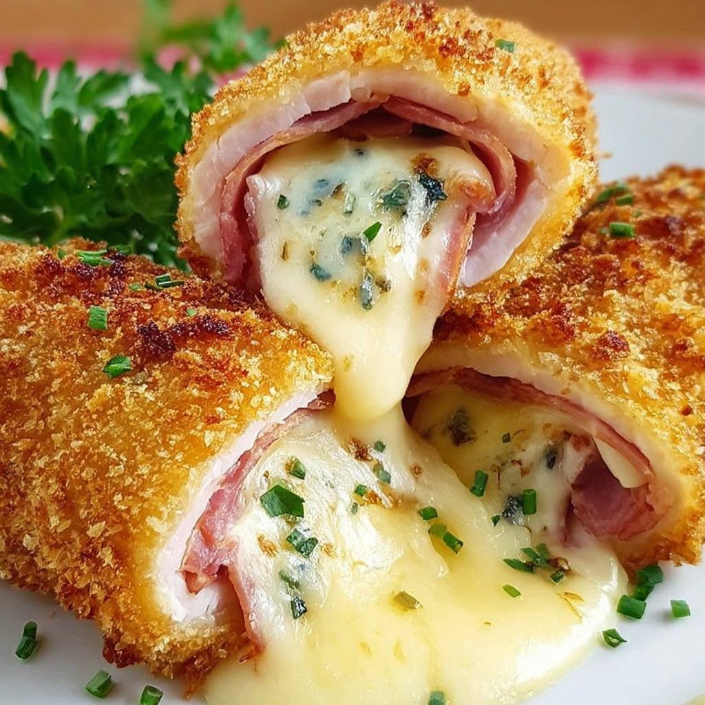 Pour un résultat encore plus croustillant, utiliser de la chapelure panko. Retirer les cure-dents avant de servir. Les cordons bleus classiques au jambon et fromage combinent la tendreté de la viande, le fondant du fromage et le croustillant de la panure, offrant un plat simple, gourmand et apprécié de tous, idéa