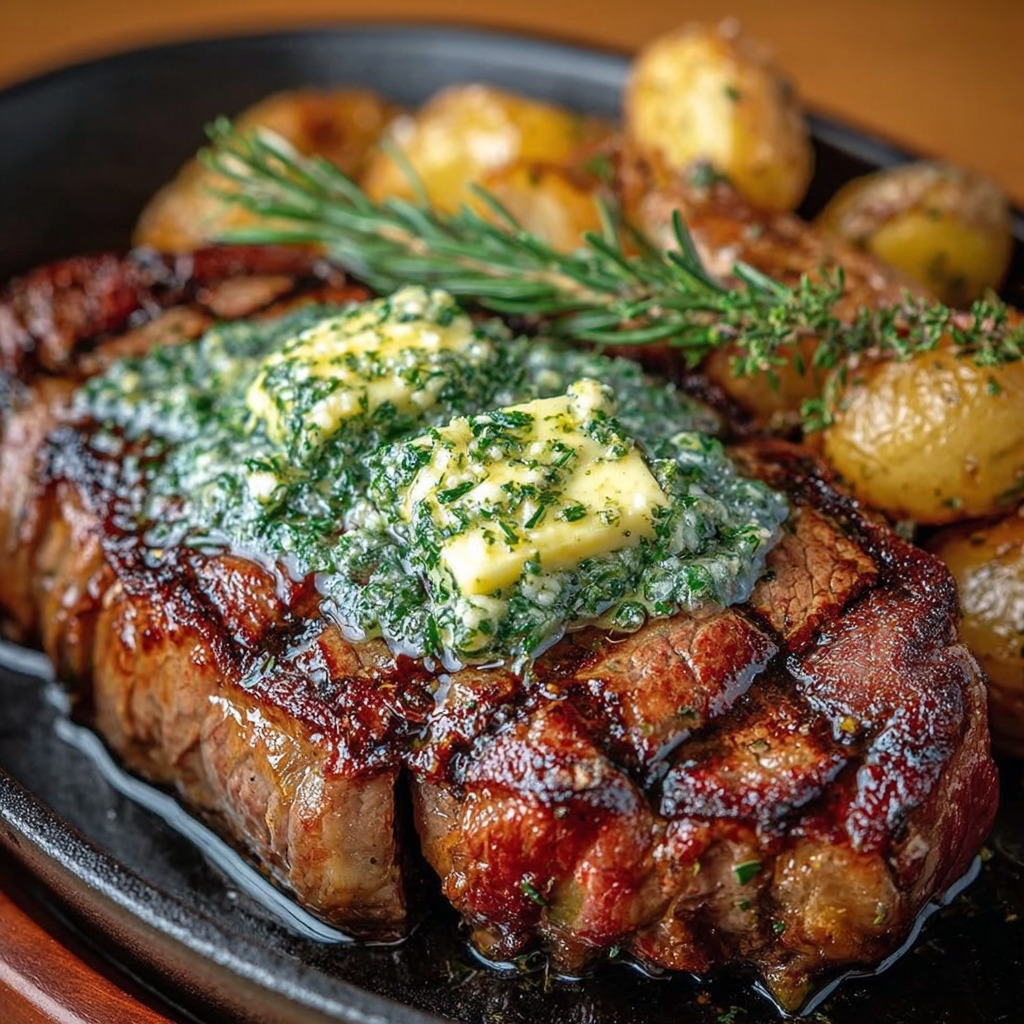 Côte de bœuf classique au beurre à l’ail et aux herbes