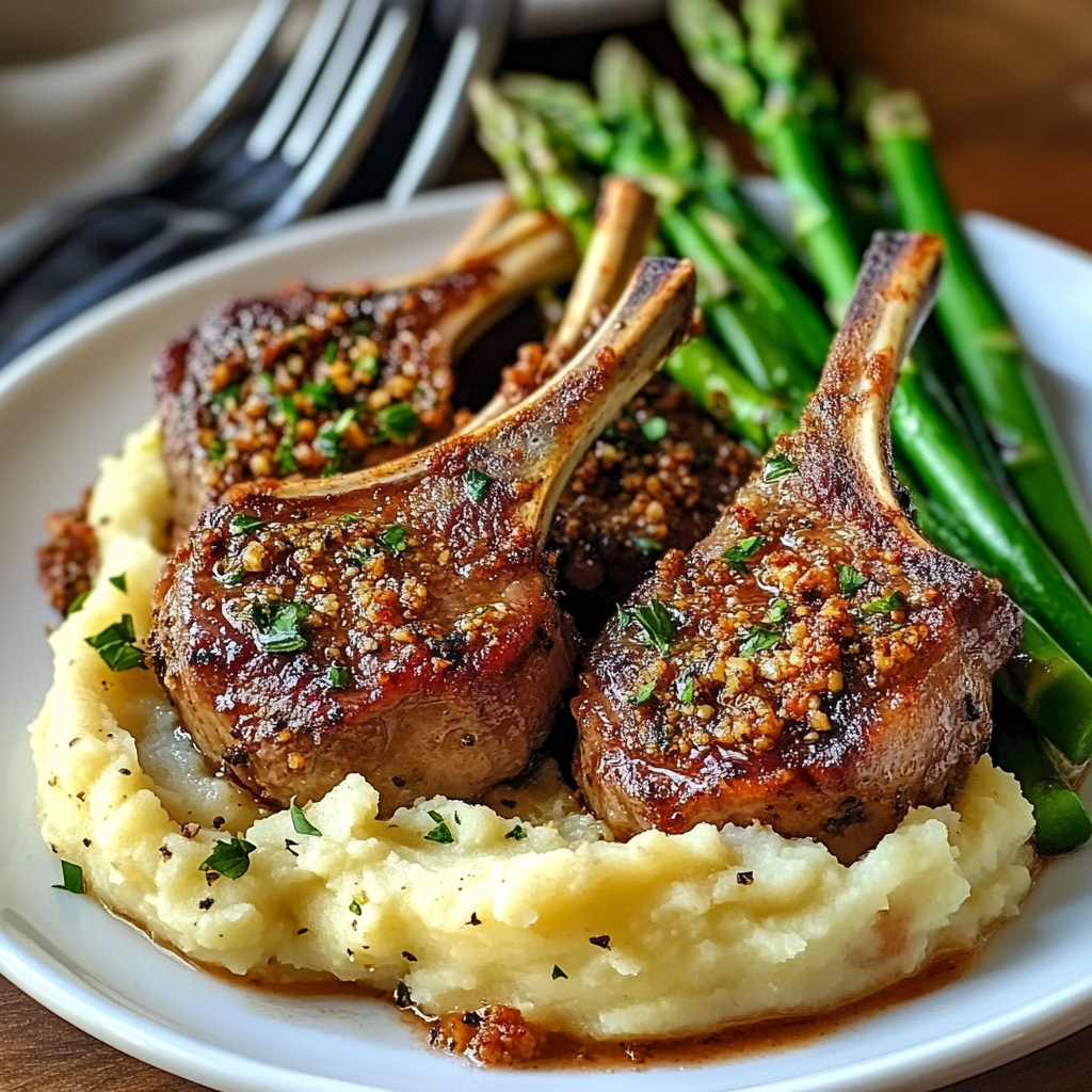Les côtelettes d’agneau croûte aux herbes, accompagnées d’une purée de pommes de terre veloutée et d’asperges croquantes, forment un plat qui marie parfaitement des saveurs terreuses et fraîches. Que vous choisissiez ou non de l’enrichir avec du homard, ce plat raffiné sera parfait pour impressionner vos invités ou pour un dîner en amoureux. Facile à préparer, mais incroyablement savoureux, ce plat deviendra certainement un incontournable de votre répertoire culinaire. Assurez-vous de bien suivre les astuces pour en maximiser le goût, et bon appétit !