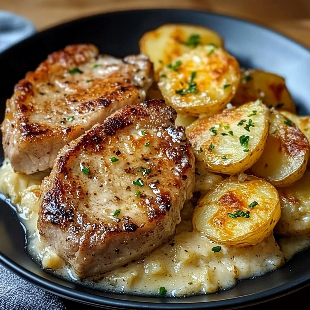 Ce plat simple et réconfortant est idéal pour un repas en famille ou entre amis. Les côtelettes de porc savoureuses se marient parfaitement avec le gratin crémeux de pommes de terre, offrant un équilibre entre richesse et simplicité.