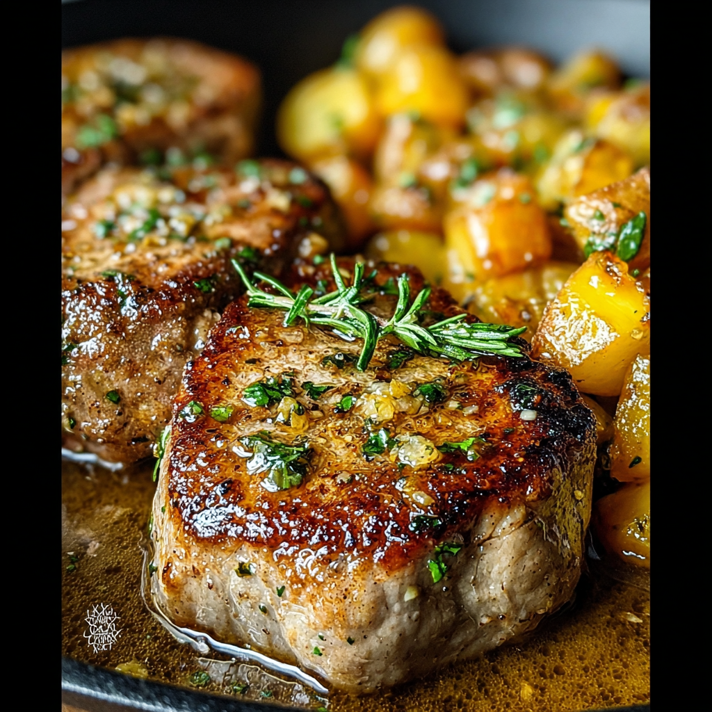 Pour les côtelettes de porc au beurre à l’ail :