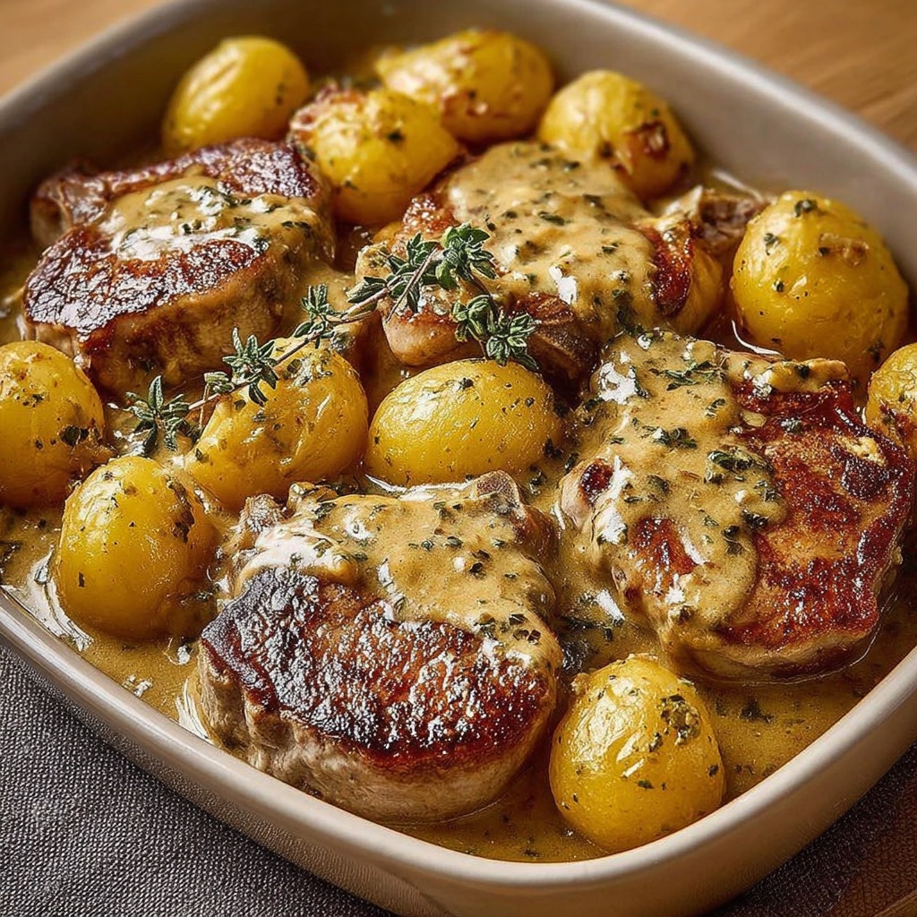 Cotelettes de Porc Fondant et Pommes de Terre Servis avec Sauce Cremeuse