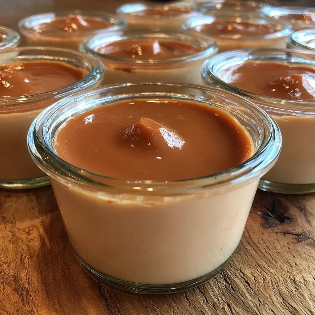 La présentation reste volontairement simple, mettant en valeur la texture et la couleur ambrée de la crème. Servie dans des ramequins ou des verrines, elle évoque un dessert authentique et généreux.