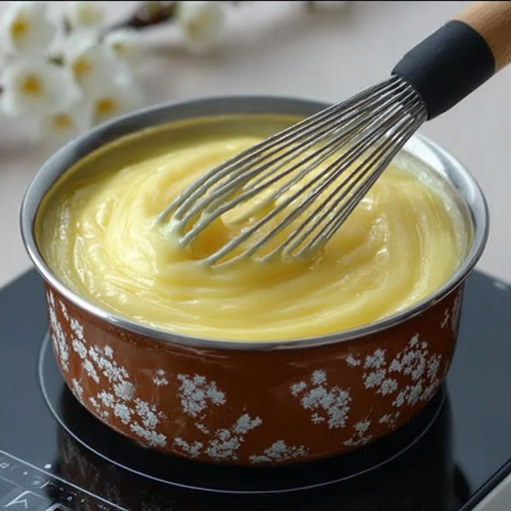 Toujours fouetter pendant la cuisson pour éviter les grumeaux.