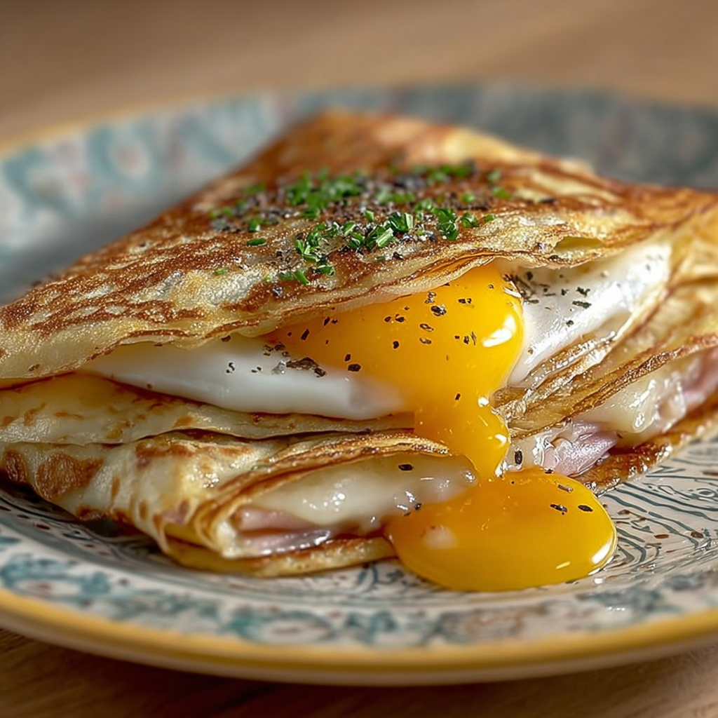 La crêpe salée jambon, œuf et fromage coulant est un plat simple, rapide et gourmand. Idéale pour un petit-déjeuner copieux, un brunch ou un dîner léger, cette recette associe le jambon savoureux, le fromage fondant et l’œuf miroir au jaune coulant. Une combinaison classique qui ravira tous les amateurs de saveurs réconfortantes.