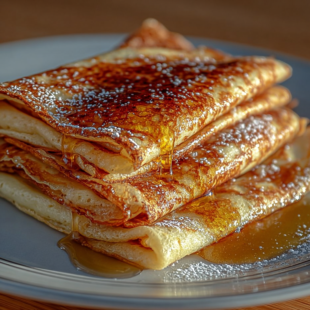 Les crêpes classiques au sucre et au beurre fondu représentent l’essence même de la pâtisserie maison : simples, rapides et délicieuses. Elles évoquent les goûters d’enfance, les dimanches en famille et les moments de partage autour d’une table. Cette version traditionnelle, légèrement sucrée et parfumée au beurre fondu, offre des crêpes moelleuses, dorées et fondantes, idéales pour être dégustées seules ou garnies selon vos envies.