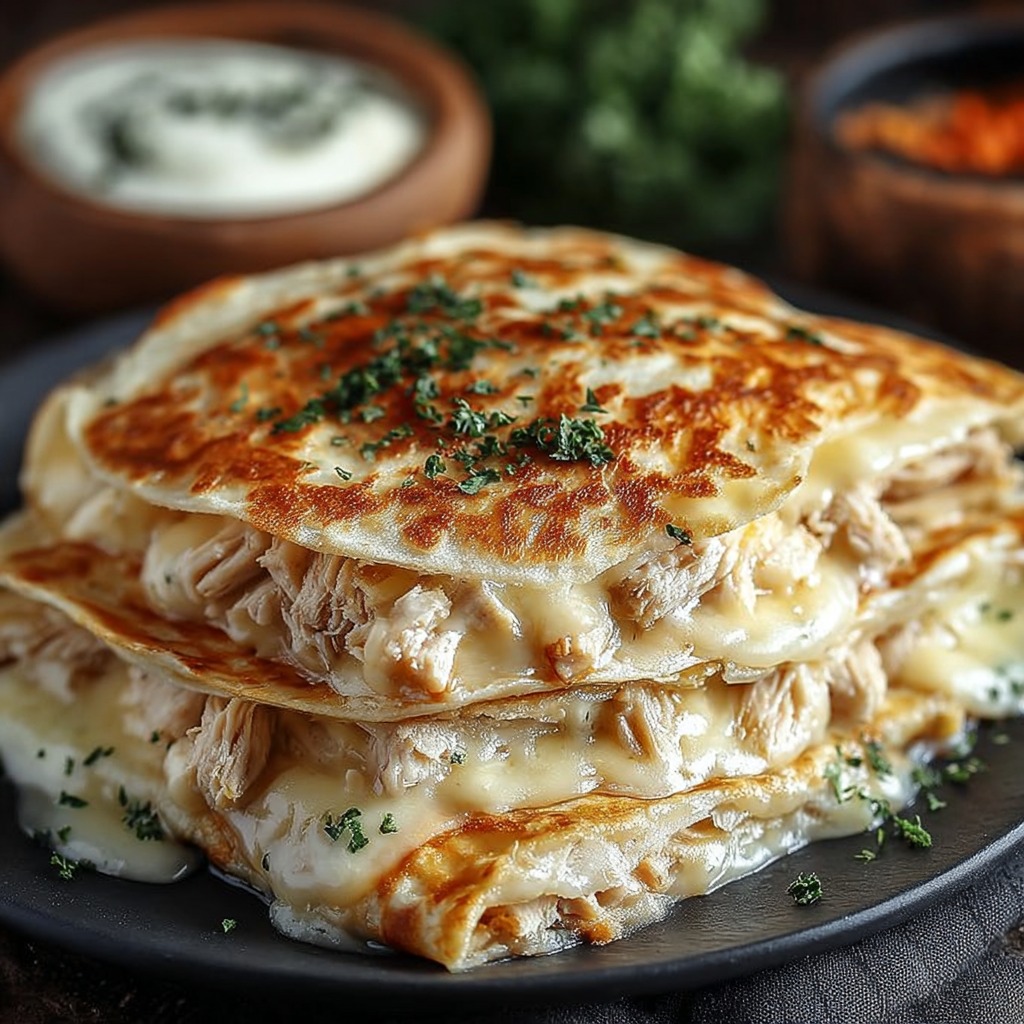 Chaque crêpe enveloppe une garniture onctueuse, apportant un contraste agréable entre la texture fine et souple de la pâte et la farce fondante au goût généreux. L’équilibre entre le poulet délicatement assaisonné et le fromage crémeux rend la recette à la fois simple et raffinée.