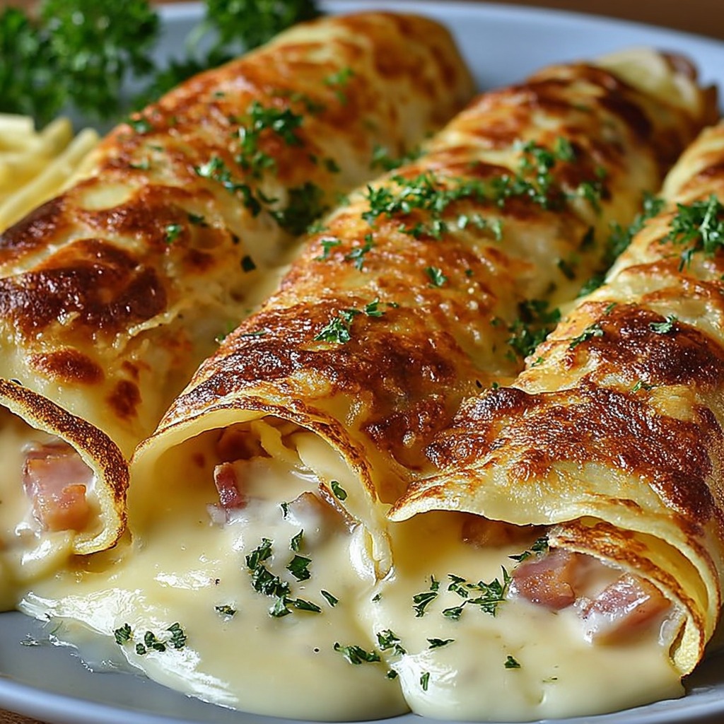 Les crêpes roulées façon carbonara gratinées représentent une alliance originale entre deux traditions culinaires. D’un côté, la crêpe, symbole de simplicité et de convivialité, et de l’autre, la carbonara, connue pour sa richesse et son caractère aromatique. L’idée consiste à transformer la sauce carbonara en garniture crémeuse pour des crêpes fines, ensuite roulées et gratinées au four. Ce mélange apporte un contraste harmonieux entre la finesse de la pâte, la générosité de la garniture et le croustillant du gratin. La recette qui suit propose une approche complète, détaillant chaque étape technique et offrant une réflexion approfondie sur l’équilibre des textures et la maîtrise des cuissons nécessaires à cette préparation.