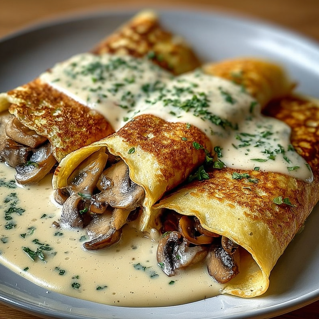 Les crêpes salées aux champignons et sauce crémeuse sont une option idéale pour un repas simple, réconfortant et plein de saveurs. La douceur des champignons, associée à une sauce onctueuse, enveloppe délicatement les crêpes pour un résultat gourmand, parfait pour un déjeuner léger ou un dîner rapide accompagné d’une salade verte.