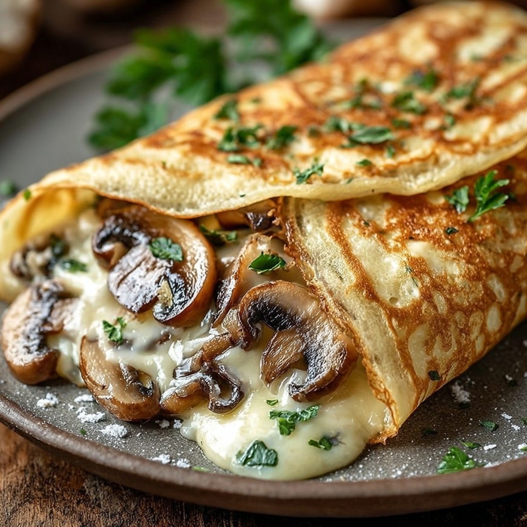 Les crêpes salées aux champignons, herbes et fromage fondu sont un plat aussi simple qu’élégant. Leur garniture généreuse et parfumée en fait une recette idéale pour toutes les occasions. La combinaison du fondant des champignons, de la douceur des herbes et de la richesse du fromage crée une harmonie parfaite en bouche. Faciles à préparer, nourrissantes et délicieusement réconfortantes, ces crêpes salées sont une invitation à savourer la cuisine ma