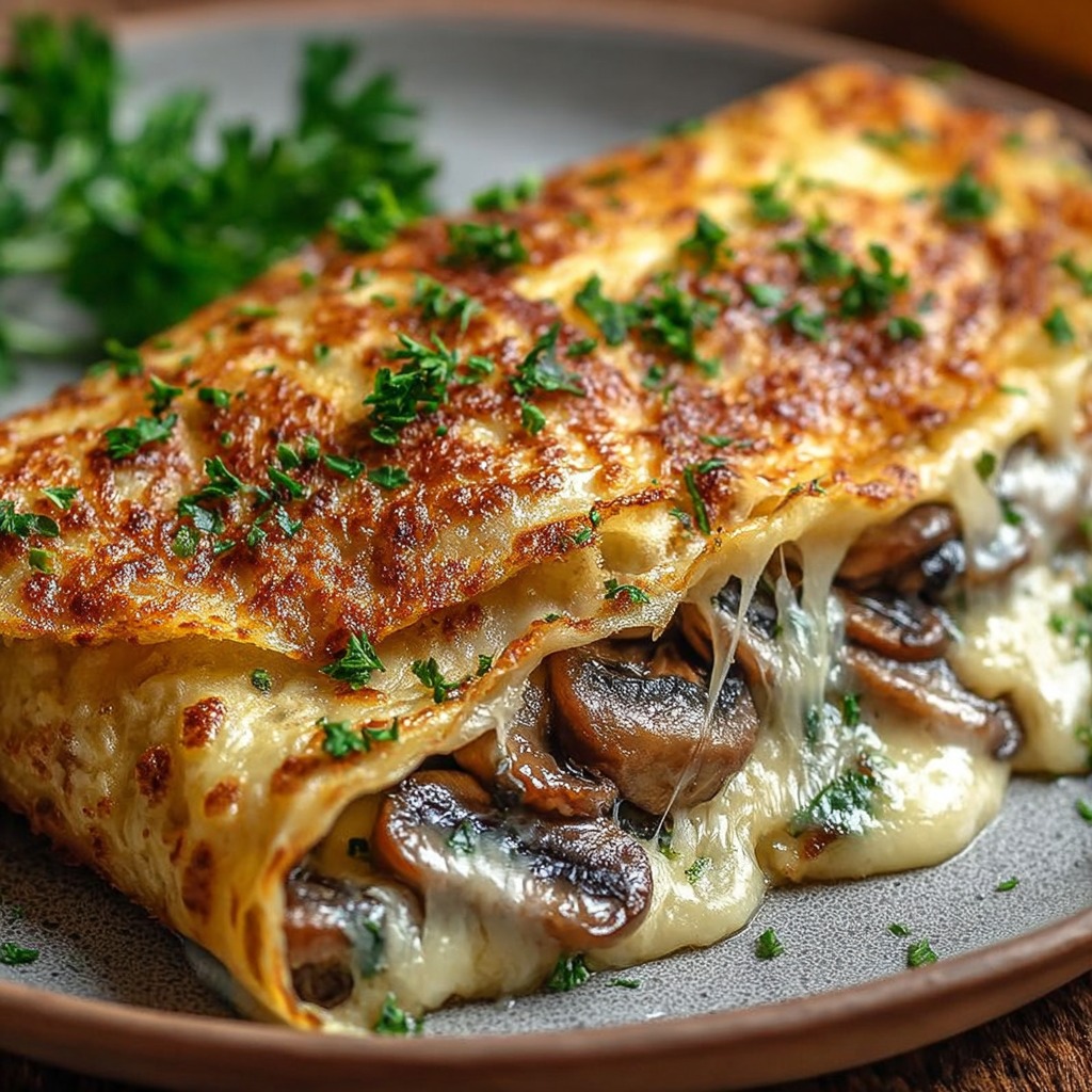 Chaque bouchée offre un équilibre parfait entre le moelleux de la crêpe, le goût aromatique des champignons et l’onctuosité du fromage fondu, créant une expérience gustative harmonieuse et réconfortante. Le mariage des textures et des saveurs fait de ce plat un incontournable de la cuisine maison, apprécié pour sa simplicité, sa richesse et son côté réconfortant.