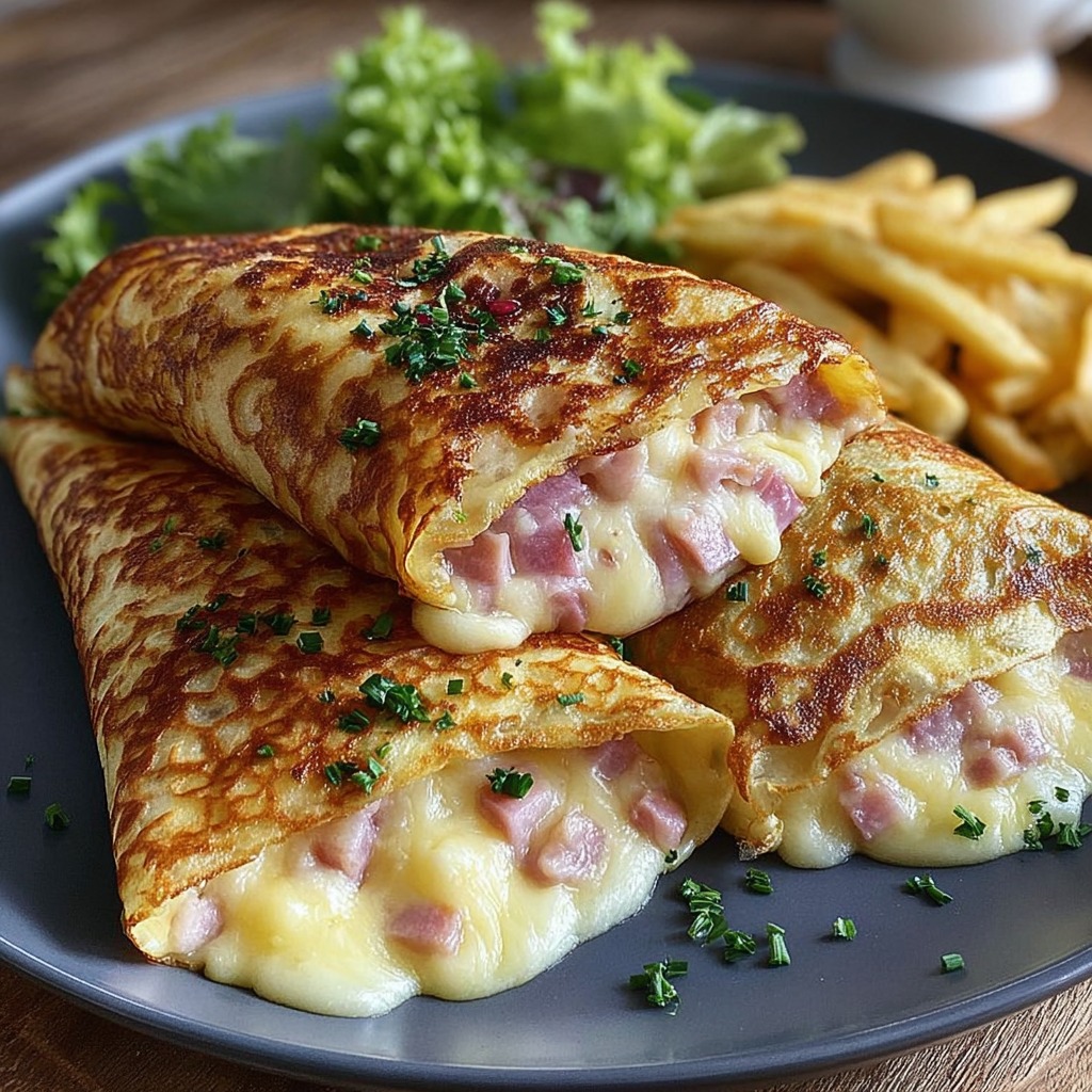 Les crêpes salées gratinées jambon fromage représentent un classique de la cuisine française, parfait pour un repas familial, un brunch ou un dîner rapide. Ce plat conjugue le fondant du fromage fondu, la tendreté du jambon et la légèreté des crêpes. Servies chaudes et gratinées, elles séduisent par leur goût généreux et leur texture moelleuse à cœur avec une légère croûte dorée en surface.