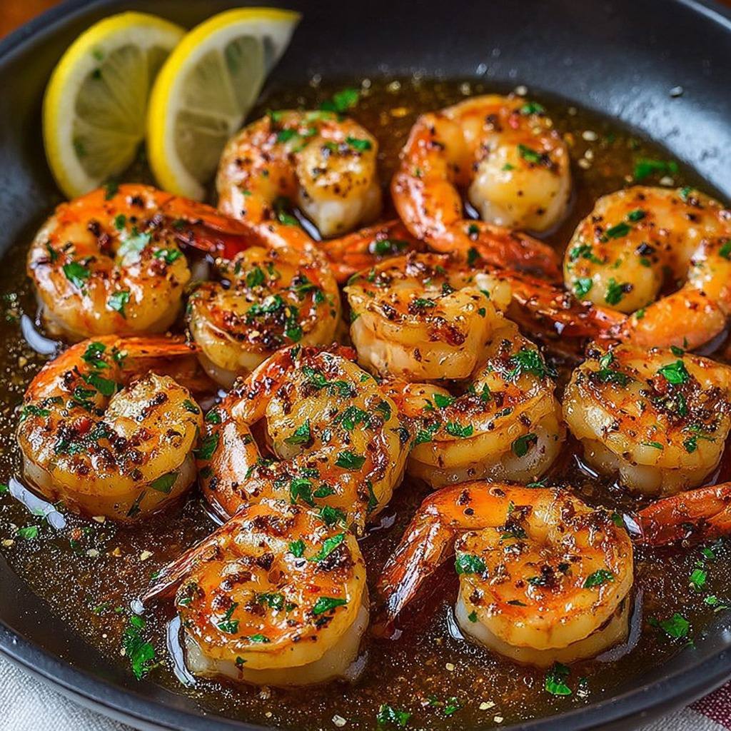 La cuisson commence par le chauffage du beurre dans une grande poêle à feu moyen. Une fois fondu et légèrement mousseux, l’ail est ajouté et laissé revenir quelques instants pour parfumer le beurre sans le brûler. Les crevettes sont ensuite déposées dans la poêle en une seule couche afin qu’elles cuisent uniformément. Elles sont saisies rapidement, environ deux à trois minutes de chaque côté, jusqu’à ce qu’elles deviennent roses et opaques. Il est important de ne pas surcuire les crevettes pour conserver leur texture ferme et tendre.
