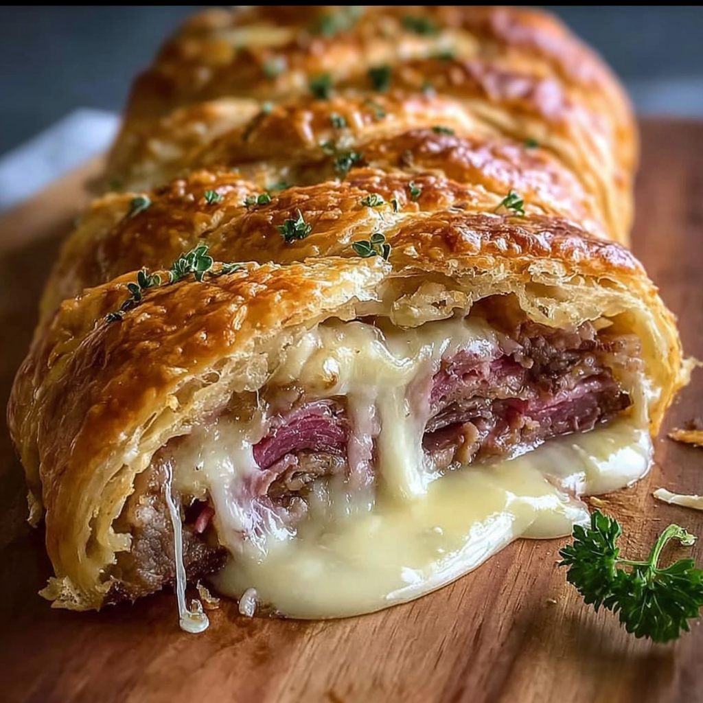Le Croissant Reuben Bake est une délicieuse déclinaison au four du mythique sandwich Reuben, une spécialité américaine emblématique née dans les années 1920 aux États-Unis. Si le sandwich classique combine pain de seigle grillé, corned beef, fromage suisse, choucroute et sauce russe, cette version revisitée se présente sous la forme d’une bûche feuilletée, dorée au four, roulée dans des croissants prêts à cuire. Un plat savoureux, croustillant à l’extérieur, fondant à l’intérieur, idéal pour un brunch du week-end, un déjeuner réconfortant ou un dîner rapide.