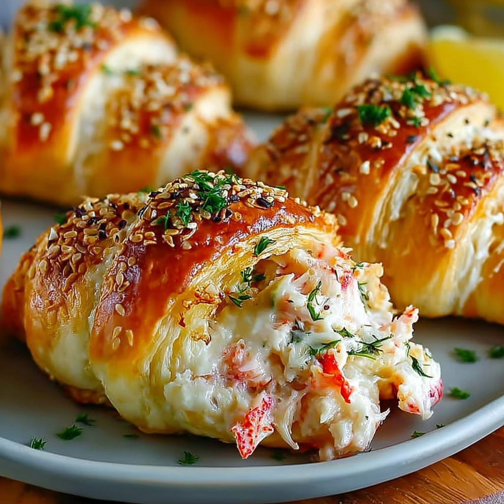 Les croissants fourrés au crabe et au fromage sont une recette aussi simple que raffinée. Ils allient la gourmandise du fromage fondu au goût délicat de la chair de crabe, le tout enveloppé dans un croissant croustillant et doré.