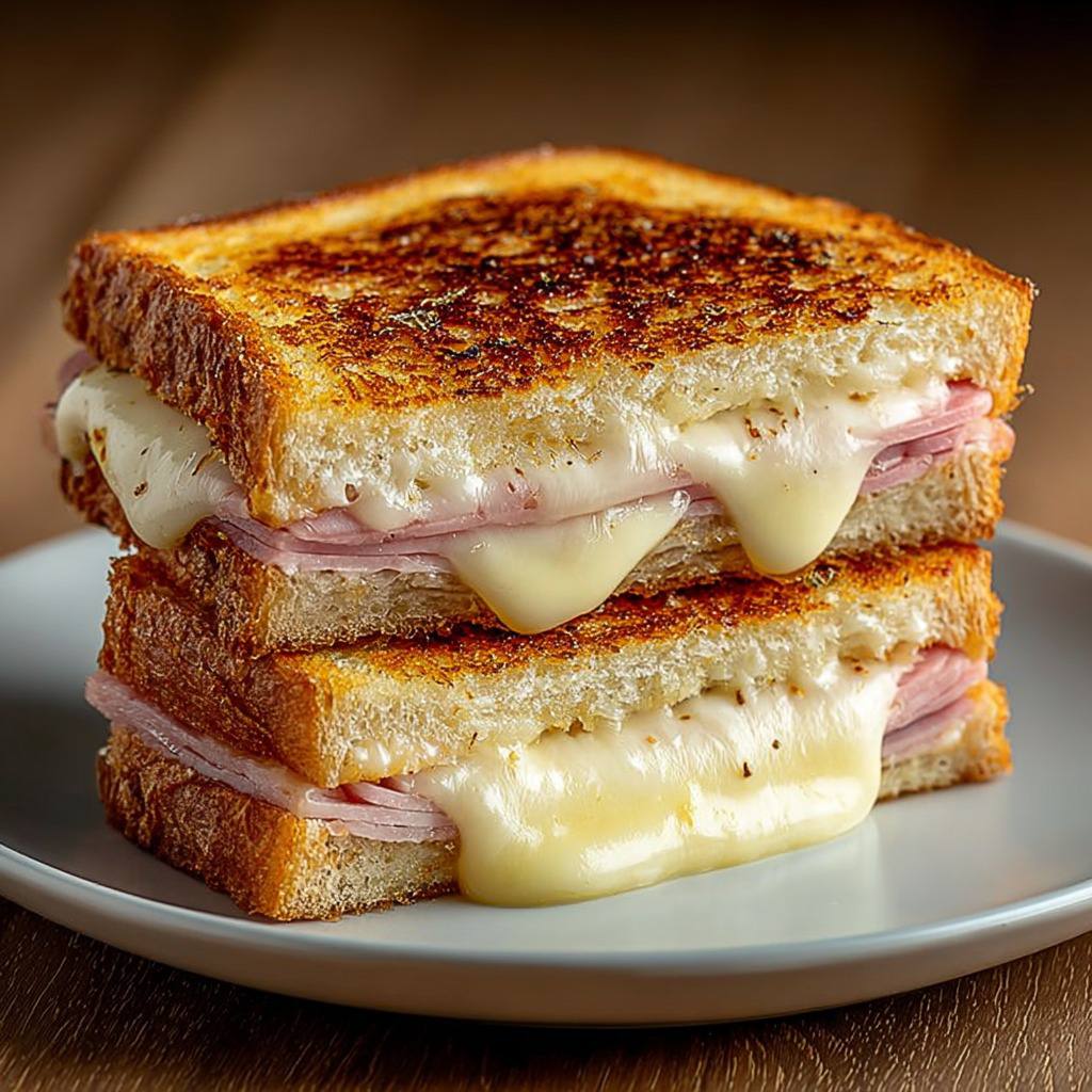 Croque-monsieur croustillant au jambon et au fromage