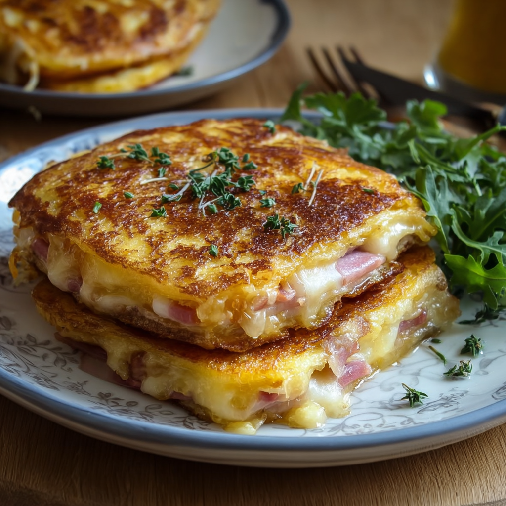 Le croque-monsieur perdu combine le meilleur de deux mondes : le croustillant du croque-monsieur classique et la gourmandise moelleuse du pain perdu. Une recette simple, rapide et délicieuse, parfaite pour un petit-déjeuner copieux, un brunch ou un dîner léger.