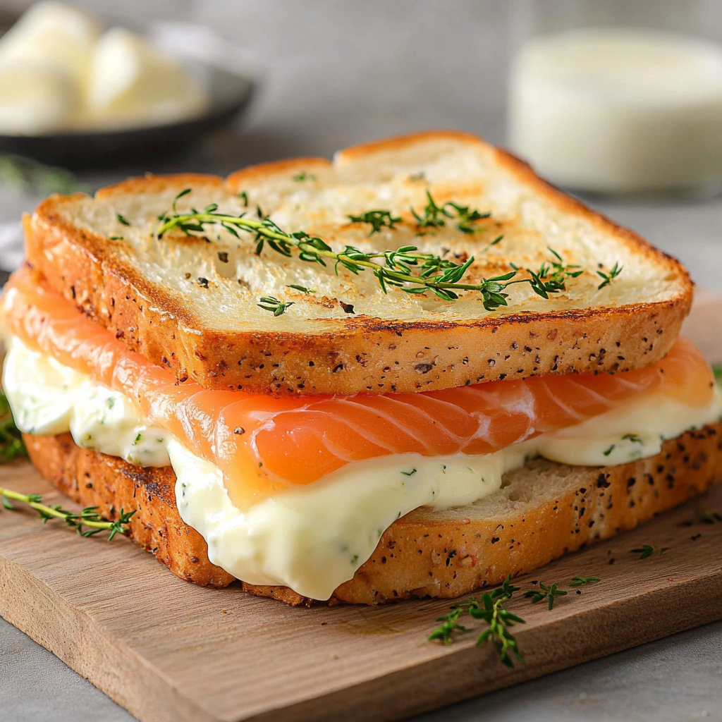 Croque-monsieur saumon et Boursin : Remplacez le fromage frais par du Boursin ail et fines herbes pour une saveur plus intense.