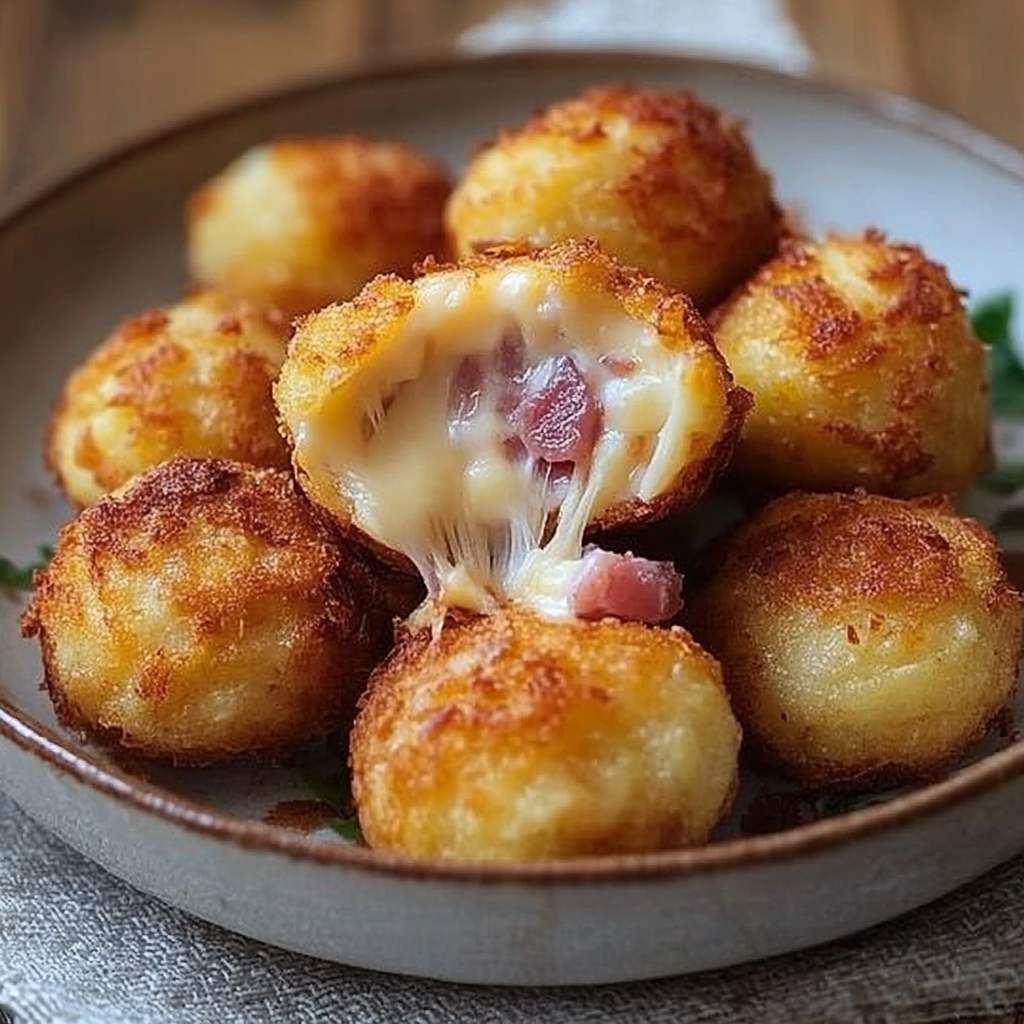 Ces croquettes allient la douceur de la purée de pommes de terre à la richesse du jambon et du fromage fondant, offrant une texture croustillante à l’extérieur et fondante à l’intérieur.