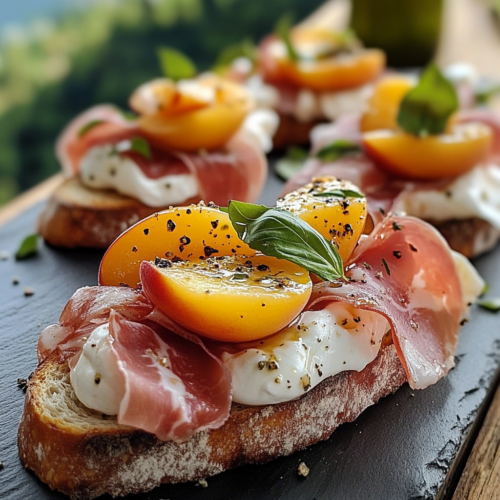 Les Crostinis Burrata au Prosciutto et Pêches avec Miel Épicé sont un véritable délice, combinant des ingrédients simples pour un plat qui impressionne à chaque bouchée. Faciles à préparer, délicieux et visuellement splendides, ils sont parfaits pour tout moment où vous voulez ajouter une touche de sophistication à votre table. Que ce soit pour un apéritif, un dîner ou un événement spécial, cette recette saura plaire à vos invités et laissera un souvenir mémorable.