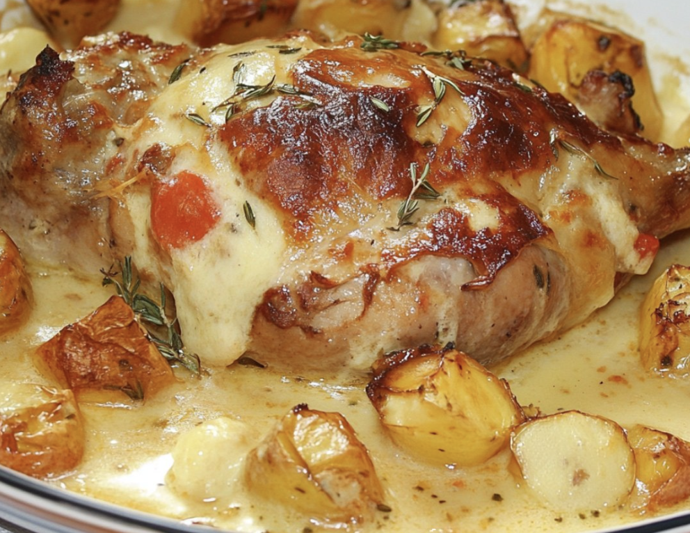 La cuisse de dinde à la dijonnaise est un plat savoureux et convivial, idéal pour un repas en famille. La viande est délicieusement parfumée à l’ail et enrobée d’une sauce crémeuse à la moutarde, le tout accompagné de pommes de terre fondantes et de tomates confites.