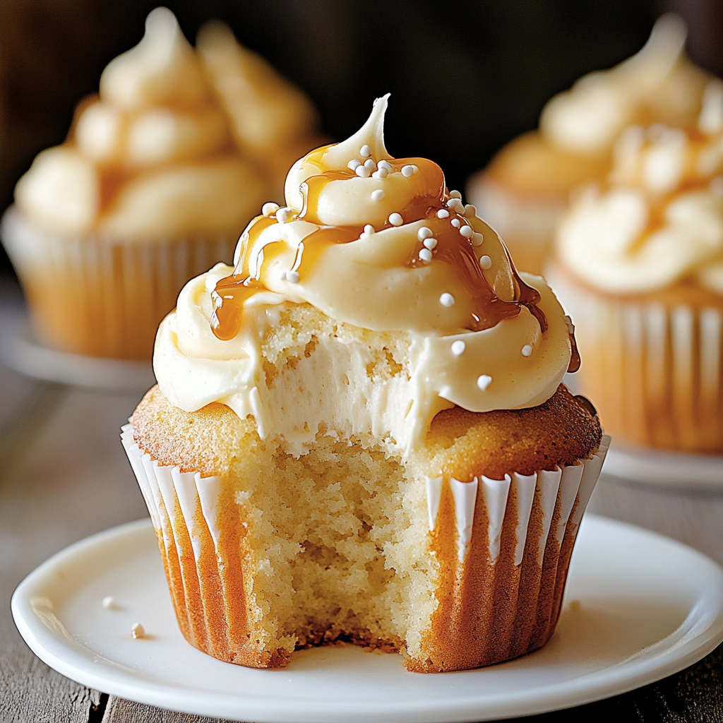 De délicieux cupcakes moelleux fourrés de fromage à la crème et caramel, parfaits pour les amateurs de sucré-salé !