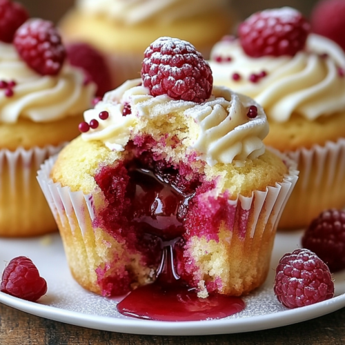 - Garniture de framboises fraîches : Pour un goût encore plus fruité, vous pouvez insérer une framboise au centre de chaque cupcake avant la cuisson. Cela apportera une touche surprenante et juteuse à chaque bouchée.