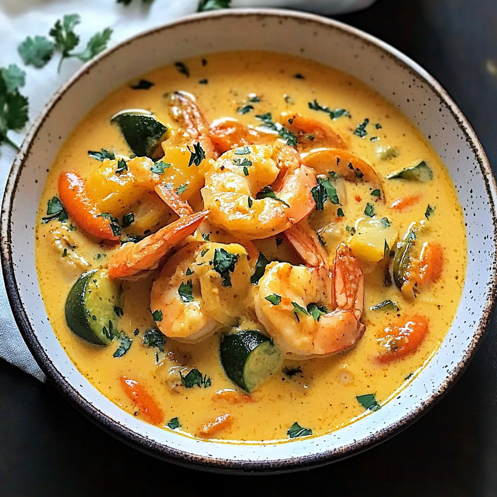 Ce curry apporte des protéines, des vitamines, des fibres et des acides gras essentiels, le tout dans un repas équilibré. Les crevettes sont une source de protéines maigres tandis que le lait de coco apporte des graisses saines. Ce plat est également faible en glucides, idéal pour un dîner léger et nutritif.