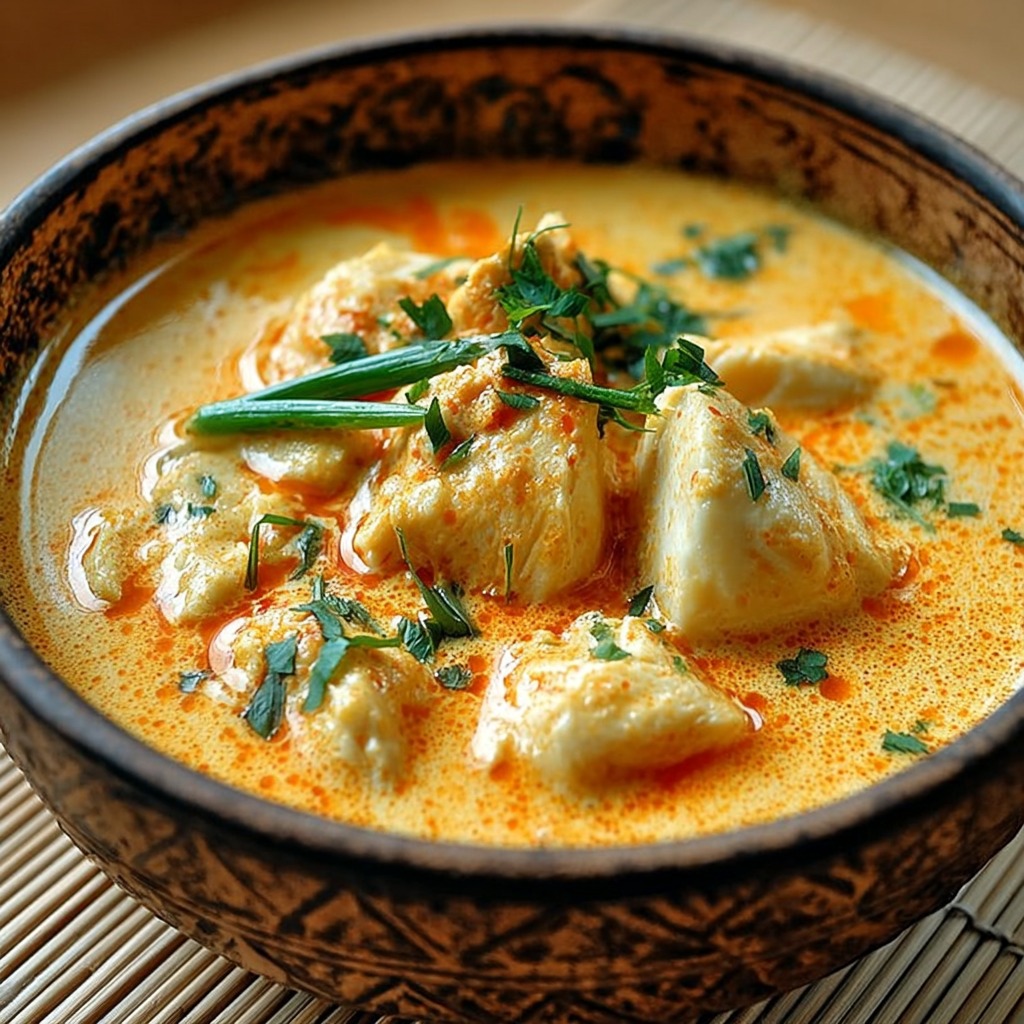 Pour un goût plus intense, laisser reposer le poisson quelques minutes dans la sauce hors du feu avant de servir. Ajuster le niveau de piquant en ajoutant un peu de piment frais ou en modulant la quantité de pâte de curry. La crème de coco peut être remplacée par du lait de coco léger pour une version plus légère, tout en conservant le goût exotique.