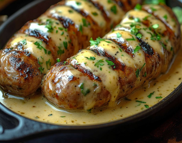 Vérifiez la cuisson de la dandouillette qui doit rester tendre et juteuse à l’intérieur. Servez immédiatement, nappé de la sauce onctueuse. Accompagnez éventuellement d’un accompagnement léger (légumes vapeur ou salade verte) pour équilibrer le plat.