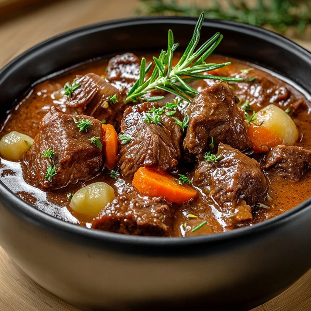 Ce plat illustre la richesse du patrimoine gastronomique français : la lenteur de la cuisson, la patience du cuisinier et le respect du produit. Le parfum du romarin et la profondeur de la bière brune transforment une simple daube en un plat de caractère, à la fois rustique et raffiné. Servie lors d’un repas familial ou d’une grande tablée d’hiver, la daube d’agneau à la bière brune et au romarin évoque le partage, la chaleur et la générosité d’une cuisine