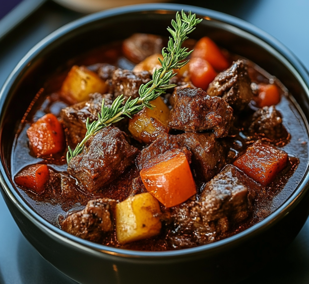 Accompagnement : Servez la daube chaude, accompagnée de pommes de terre vapeur, de pâtes fraîches ou de pain croustillant pour profiter pleinement de la sauce.