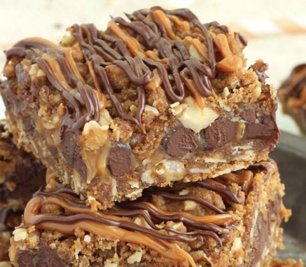 - Oatmeal Cookie Crumble: Crumble the reserved oatmeal cookie dough over the luscious caramel layer, creating a delightful contrast in texture and taste.
