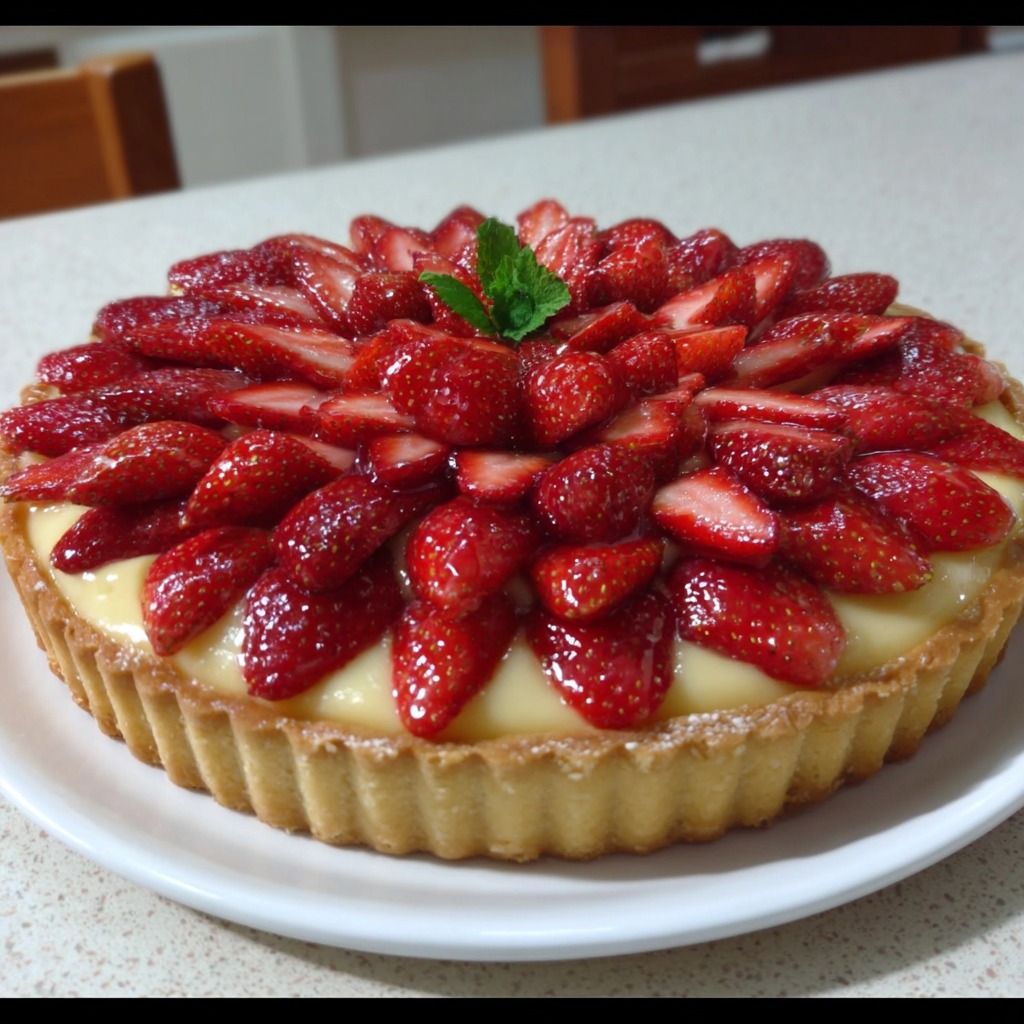 Délicieuse Tarte aux Fraises Maison illustre parfaitement l’équilibre entre croustillant, douceur et fraîcheur. C’est un dessert qui célèbre la saveur naturelle du fruit et qui ravit autant les yeux que le palais. Sa préparation demande de la patience, mais son résultat offre un plaisir gourmand qui rappelle les m