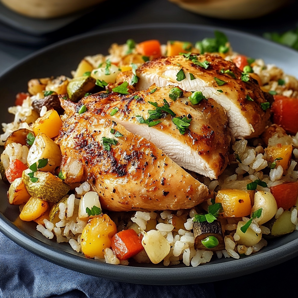 Ce délicieux plat de poulet mariné servi avec un riz aux légumes coloré est parfait pour un repas complet et nourrissant. Facile à préparer, il marie des ingrédients simples pour un résultat gourmand, riche en saveurs et équilibré. Que vous souhaitiez l’intégrer dans un dîner de semaine ou impressionner vos invités, cette recette est idéale et peut être facilement adaptée en fonction des légumes de saison.