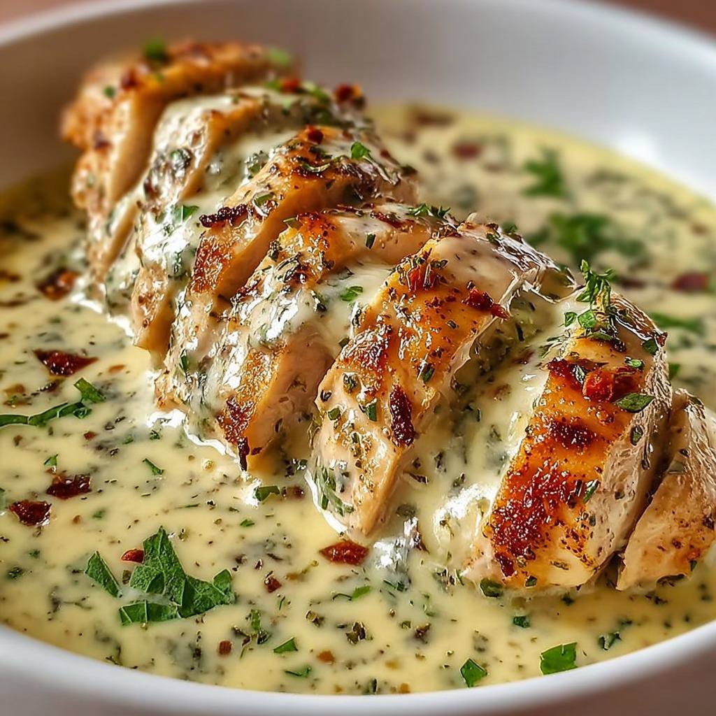 La présentation joue un rôle clé pour séduire visuellement. Disposez les filets de poulet sur un plat de service, nappez-les généreusement de sauce onctueuse et parsemez quelques brins de persil frais haché. Vous pouvez ajouter quelques tranches de citron pour apporter de la fraîcheur ou des légumes colorés en accompagnement pour un contraste esthétique. La sauce riche et veloutée forme un nappage brillant qui attire l’œil et stimule l’appétit.