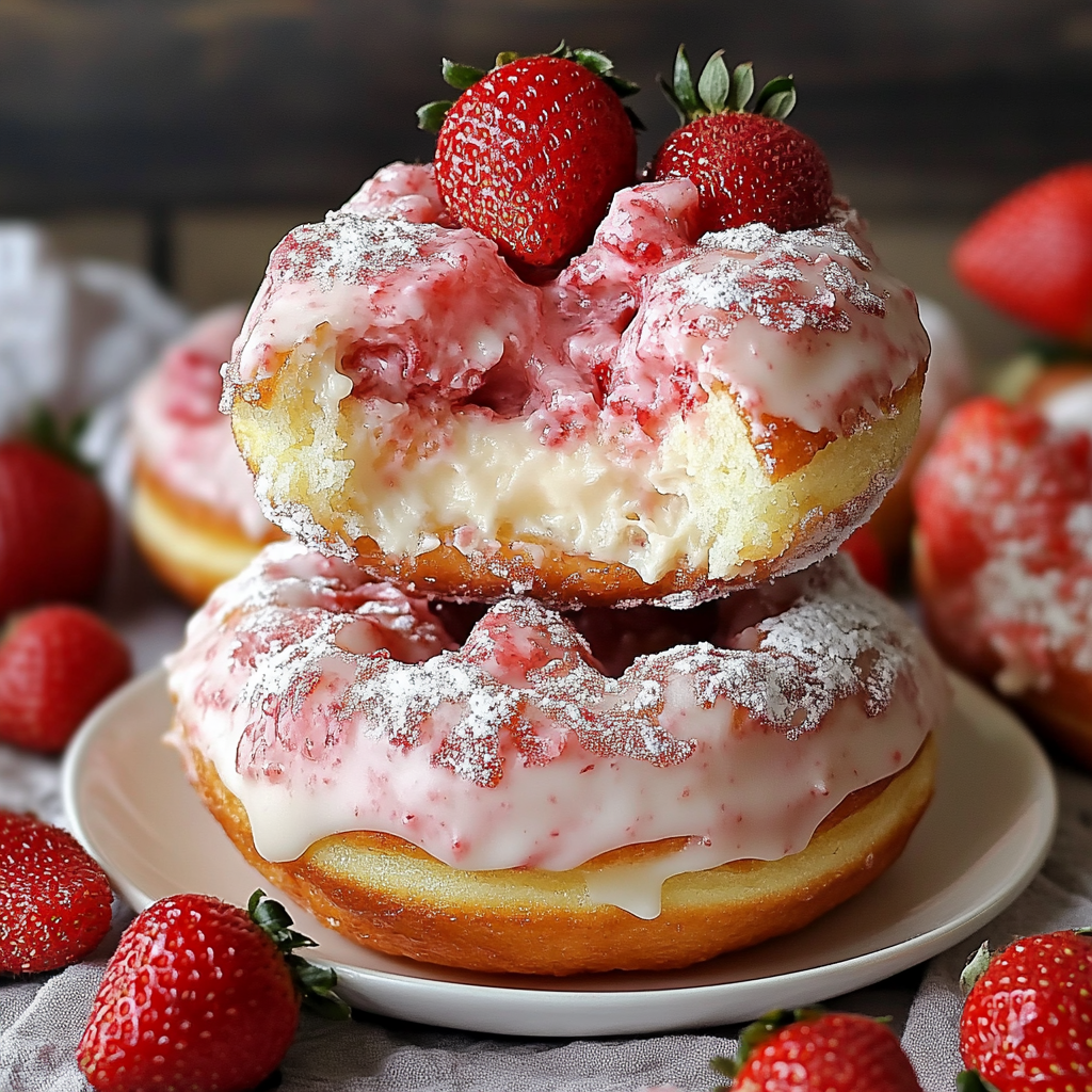 Les donuts farcis au cheesecake aux fraises sont un délice irrésistible qui allie la légèreté des donuts à la richesse d’un cheesecake crémeux, le tout rehaussé par la douceur des fraises. Que vous soyez un amateur de pâtisserie ou que vous cherchiez simplement à vous faire plaisir, cette recette vous séduira à coup sûr. Parfaits pour un brunch, un goûter ou simplement pour satisfaire une envie sucrée, ces donuts moelleux sont aussi agréables à regarder qu’à déguster.