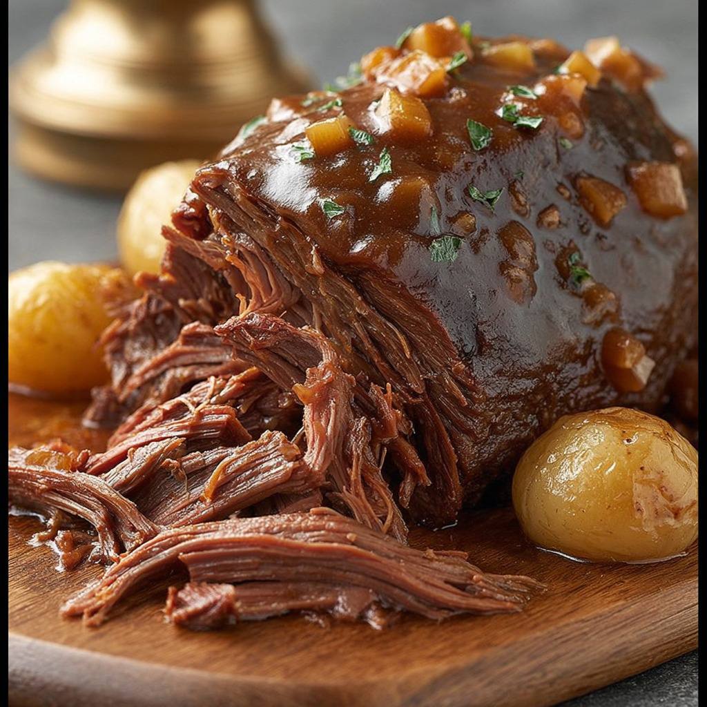 pour une version encore plus aromatique, vous pouvez saisir la viande avec des oignons caramélisés et de l’ail légèrement doré, ajouter des herbes comme du romarin ou du thym au début de la cuisson et finir avec un peu de zeste de citron ou de vinaigre balsamique pour apporter de la fraîcheur et une légère acidité qui contrebalance la richesse de la viande.