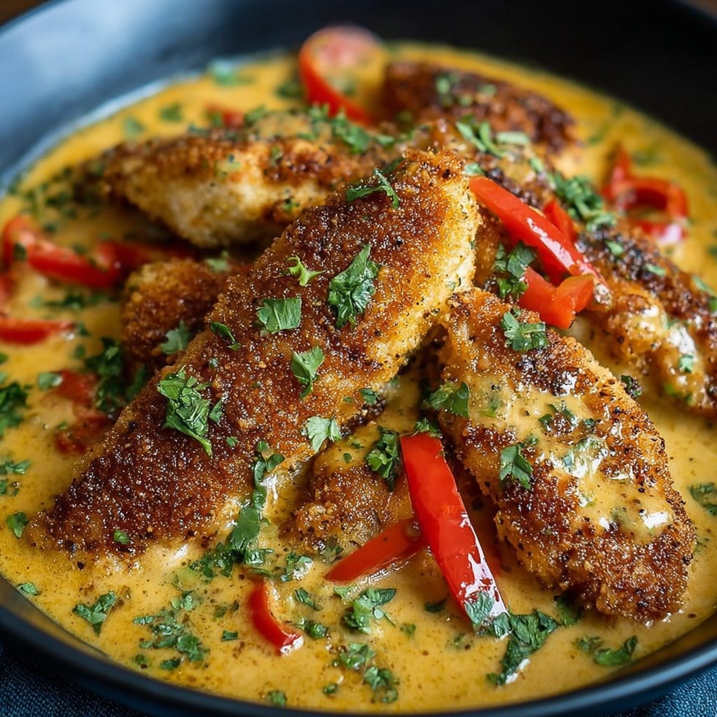 Émincé de poulet à la crème de poivrons