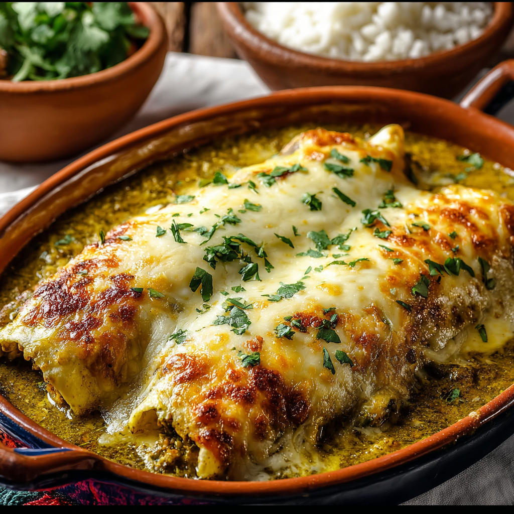 Ce plat est idéal pour un dîner convivial, un repas de famille ou même pour recevoir des invités sans passer des heures en cuisine. La combinaison du piment rôti, du fromage fondant et de la sauce verte légèrement relevée crée une harmonie parfaite entre douceur et caractère.