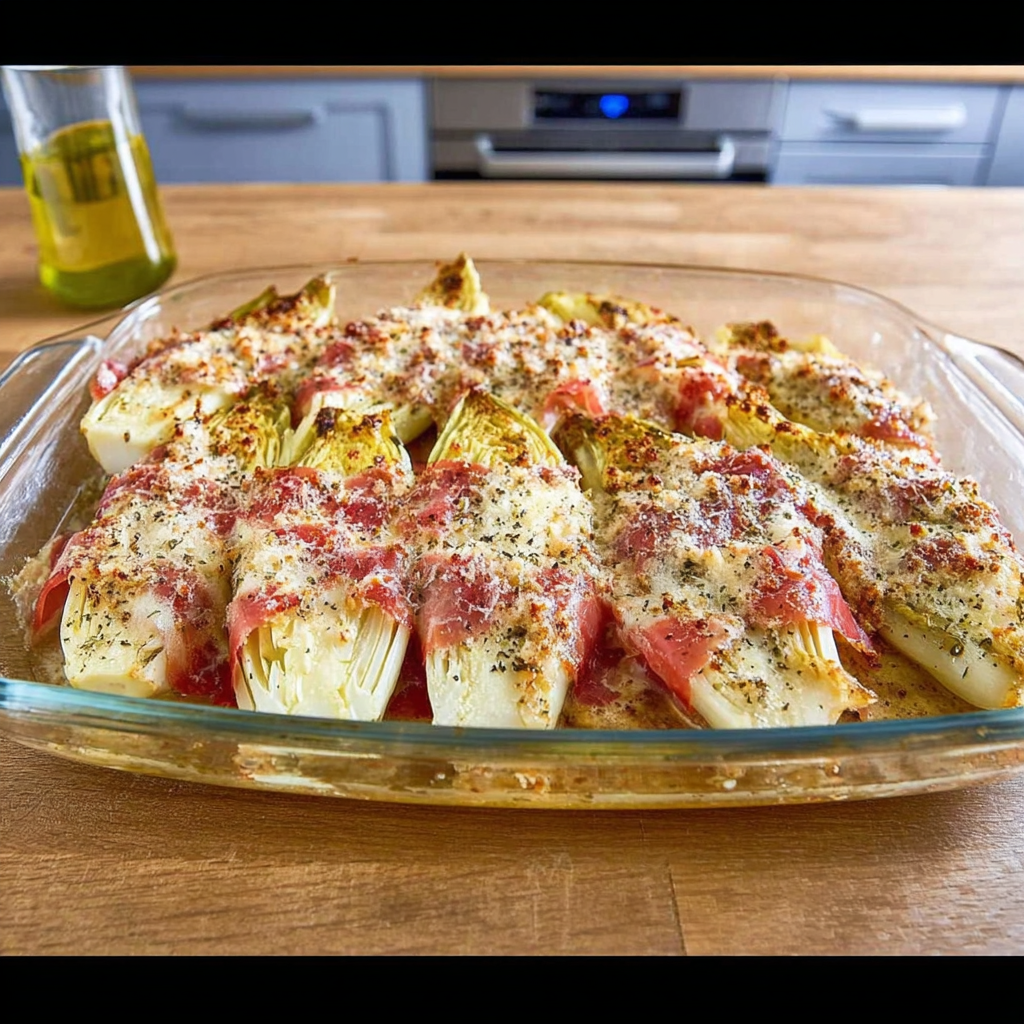 Les endives au jambon cru et parmesan au four sont un plat simple, rapide et raffiné. Elles offrent un bel équilibre entre l’amertume des endives, le salé du jambon et le goût intense du parmesan gratiné. C’est une excellente option pour un repas léger mais savoureux, qui change des gratins classiques.