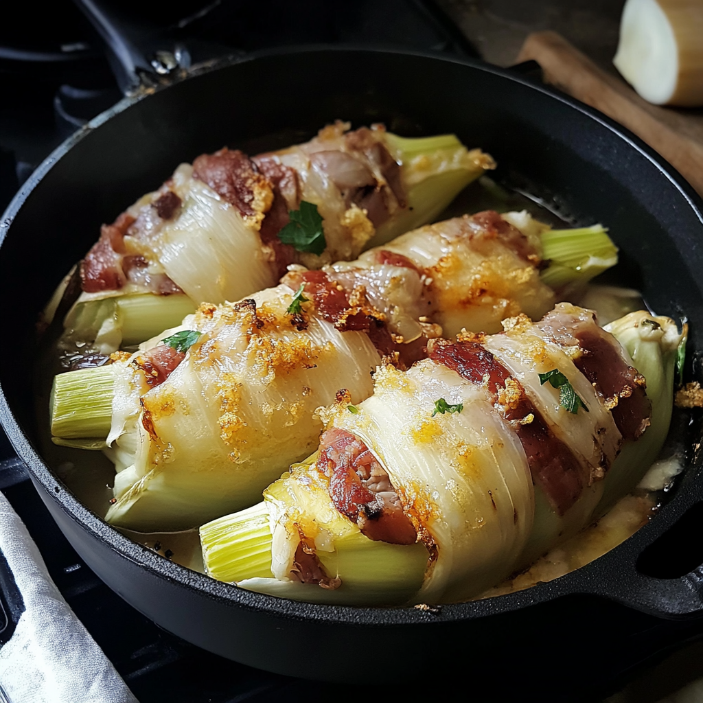 - Ajout de fromage : Pour les amateurs de fromage, vous pouvez saupoudrer un peu de gruyère râpé ou de comté sur les endives avant de les enrouler dans le lard. Le fromage fondra pendant la cuisson et ajoutera une onctuosité supplémentaire au plat.