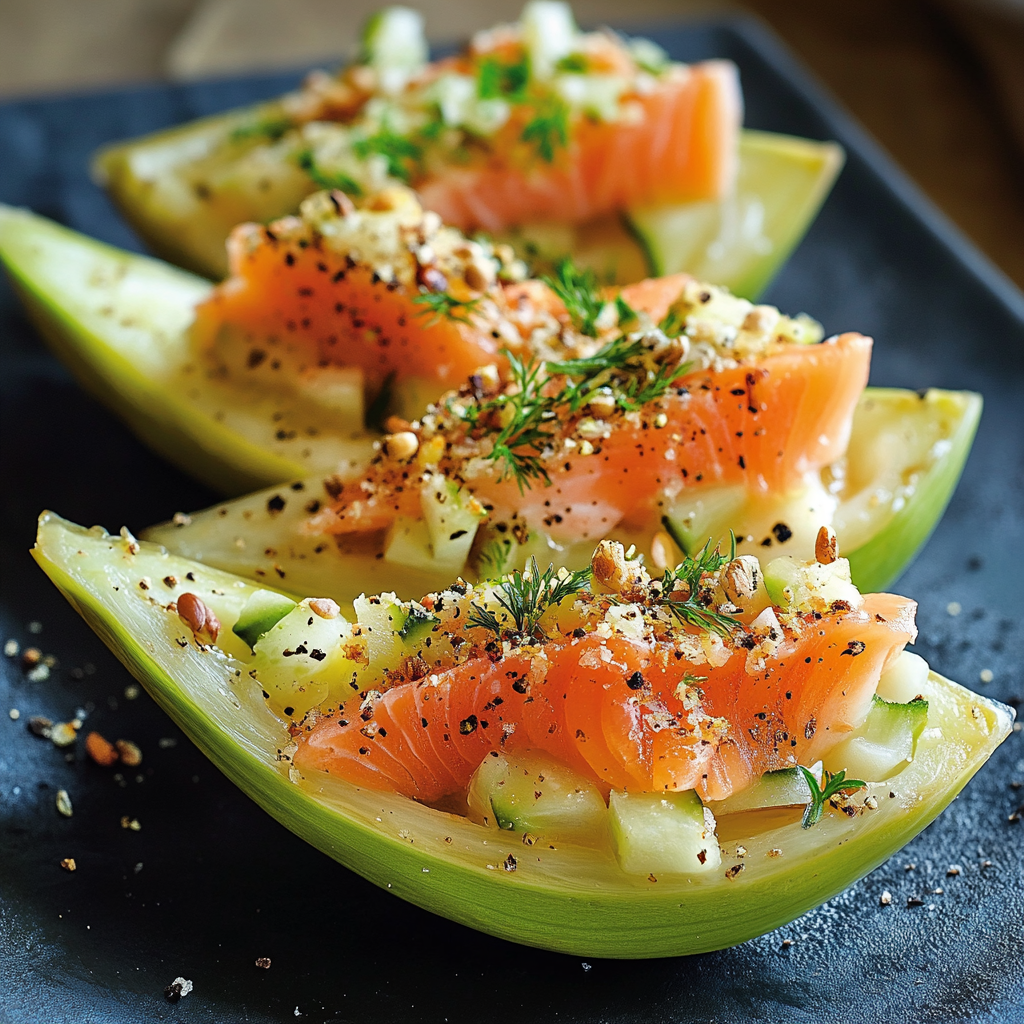 Le saumon fumé apporte une touche de sophistication à cette entrée. Riche en acides gras oméga-3, il est bon pour la santé cardiaque tout en étant une source de protéines maigres. Sa saveur salée et fumée contraste magnifiquement avec l’onctuosité de l’avocat.