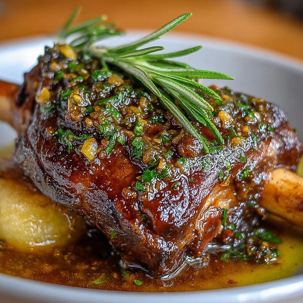 Épaule d’agneau confite au four à l’ail, au miel et à la moutarde est un plat emblématique de la cuisine française qui incarne le mariage parfait entre tendreté de la viande, douceur du miel et parfum relevé de la moutarde et de l’ail. La cuisson lente au four permet à l’épaule d’agneau de devenir fondante, tout en s’imprégnant des saveurs des aromates et de la marinade. Ce plat réconfortant est idéal pour un déjeuner ou un dîner en famille, lors d’occasions spéciales ou simplement pour savourer un repas gourmand et raffiné. Chaque élément — viande, aromates et jus de cuisson — contribue à créer un équilibre harmonieux entre douceur, intensité et onctuosité.