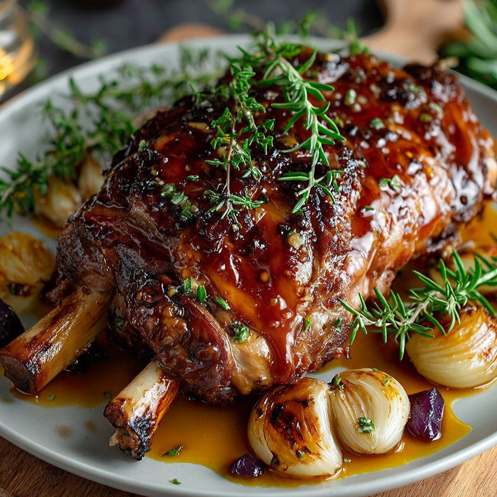 Épaule d’Agneau Confit au Four à l’Ail, au Miel et à la Moutarde