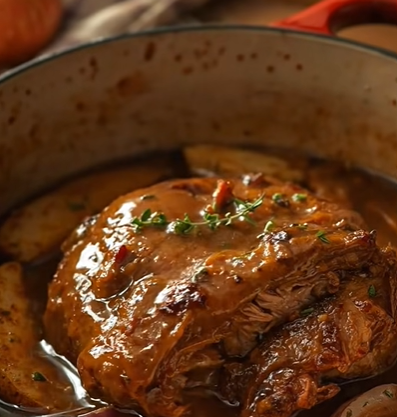 L’épaule de porc longuement braisée au cidre de pomme est l’exemple parfait d’une cuisine simple mais profondément savoureuse. Grâce à une cuisson lente et maîtrisée, une pièce modeste se transforme en un plat fondant et parfumé, riche en arômes et en émotions.
