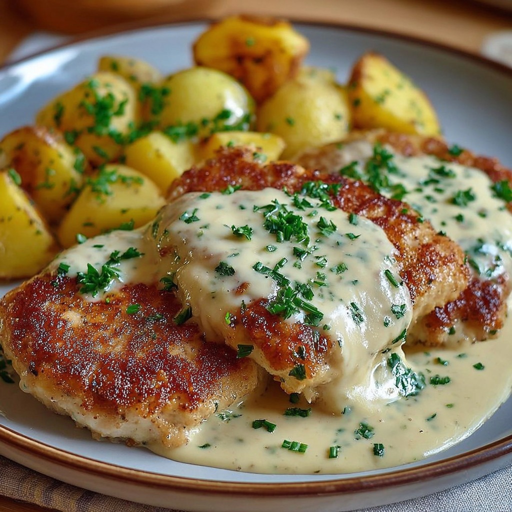 L’escalope sauce Reblochon se sert chaude, nappée de sa sauce fondante. Elle peut être accompagnée de pommes de terre sautées, de purée maison, de pâtes fraîches ou de légumes vapeur pour un repas complet et équilibré. On peut parsemer un peu de persil frais haché pour apporter de la couleur et une touche de fraîcheur.