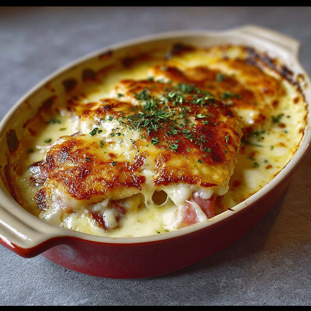 L’escalope savoyarde gratinée au Reblochon est un plat emblématique de la cuisine montagnarde française, riche en saveurs et généreusement gratiné. Ce mets combine la tendreté d’une escalope de veau ou de poulet, la finesse du jambon cru et le goût crémeux et parfumé du fromage Reblochon, emblème de la Savoie. Il s’agit d’une recette réconfortante, idéale pour les journées froides, qui allie simplicité et raffinement, et qui séduit par sa texture fondante et son parfum caractéristique de montagne. Chaque bouchée révèle l’harmonie entre la viande tendre, le fromage fondu et le jambon salé, créant un équilibre parfait entre douceur et intensité.